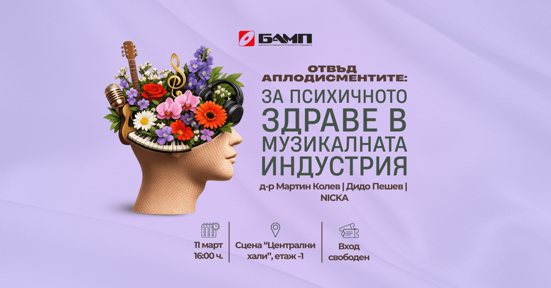 Събитието е организирано от Българска асоциация на музикалните продуценти (БАМП) и представлява открита и практична среща за психичното здраве в музикалния бизнес - без стигма и сензации - насочено към всички участници в музикалната екосистема: продуценти, служители в музикални компании, артисти, музиканти, композитори, организатори на концерти и фестивали, мениджъри, букинг агенти и др.