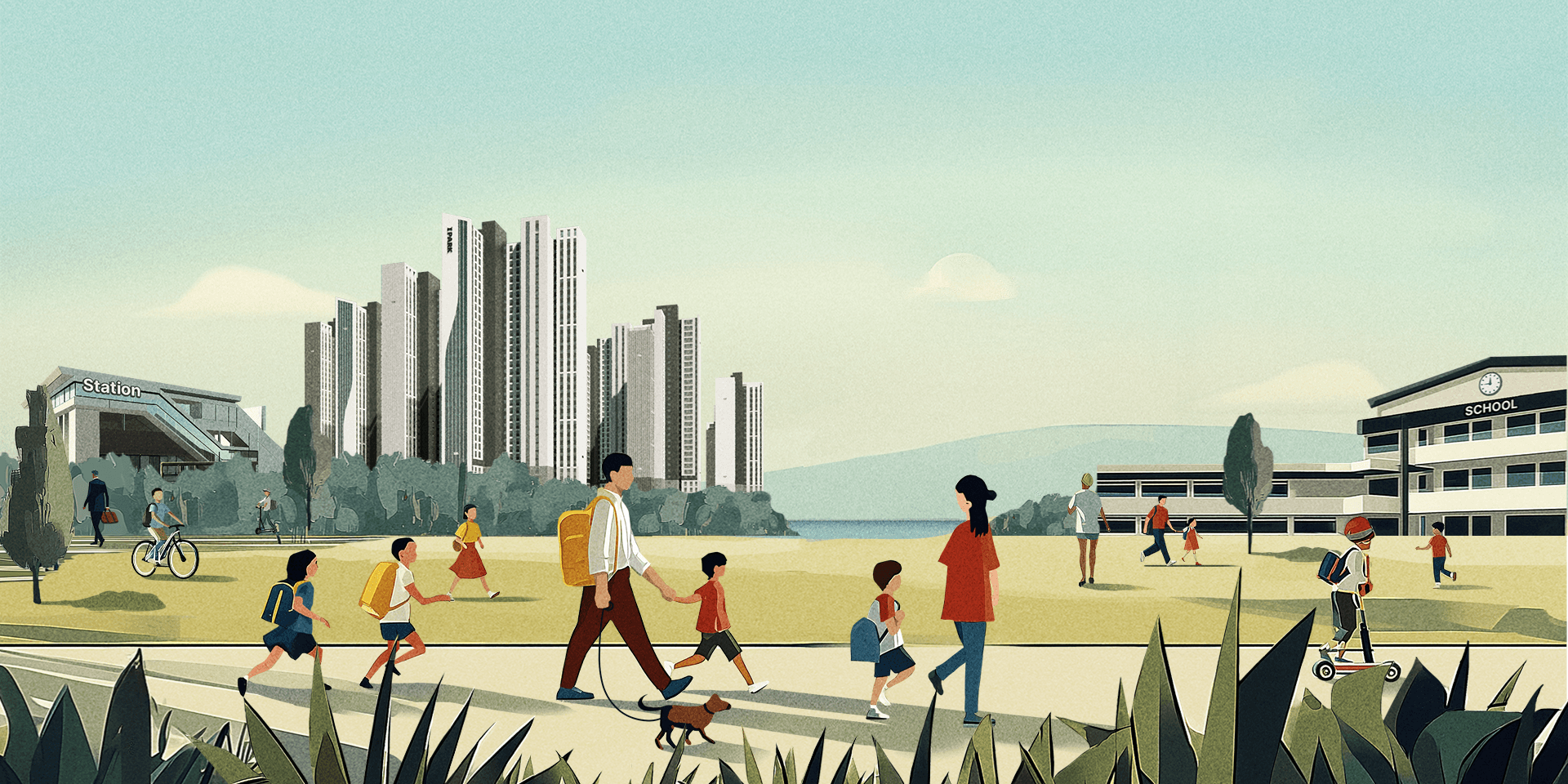 • 대규모 브랜드 시티: 총 6,103세대(또는 6,000세대 이상) 규모의 아이파크 브랜드 타운 중심축
