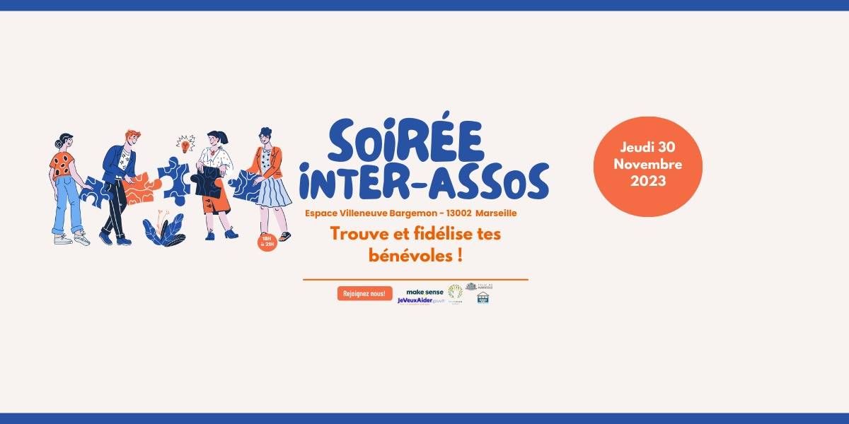 Dans le cadre des Semaines de l'engagement associatif, organisées par la Maison des associations et la Ville de Marseille, Jeveuxaider.gouv.fr, Benenova et makesense vous invite le 30 novembre de 18h à 21h à une soirée inter-asso sur la thématique "Trouver et fidéliser ses bénévoles". On vous propose un atelier d’échanges sur vos expériences et bonnes pratiques, puis des tables rondes pour parler bénévolat ponctuel, animation de communauté, avec 1dechetparjour, la Cravate Solidaire et plein d’autres !