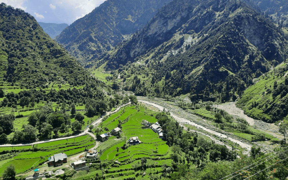 Keran Valley, with its lush fields, wooden houses, and flowing river, is a serene escape surrounded by majestic mountains and natural beauty!