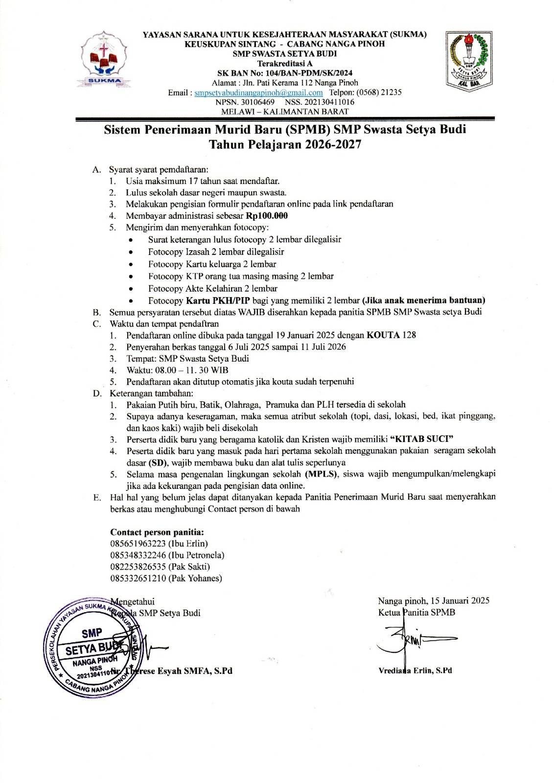 SPMB SMP SWASTA SETYA BUDI