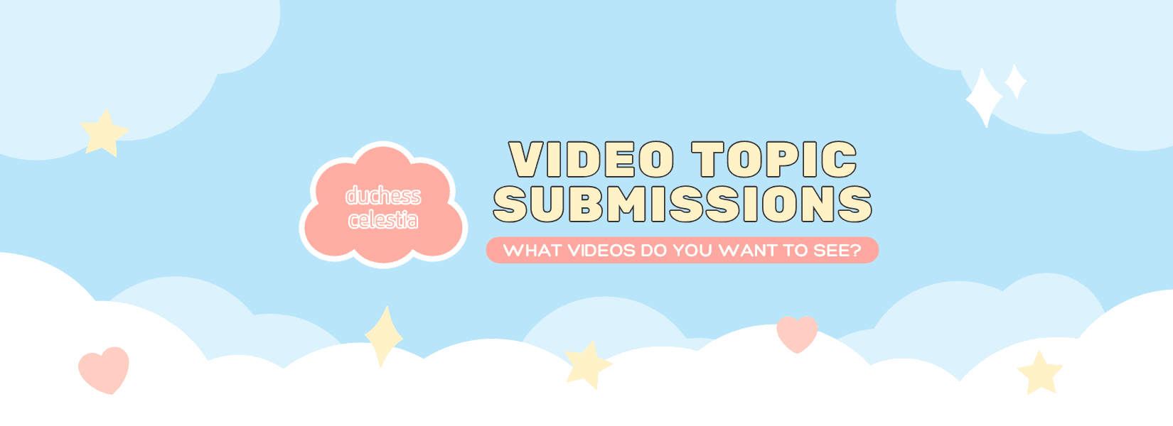 Interested in seeing a certain topic discussed on the Duchess Celestia channel? In an effort to more consistently create the kind of content you're most interested in seeing, I'm excited to open this form up as a way for you to submit it! While I can't guarantee that every topic submitted here will be discussed, I will carefully consider each one to see if it's a fit for the channel.