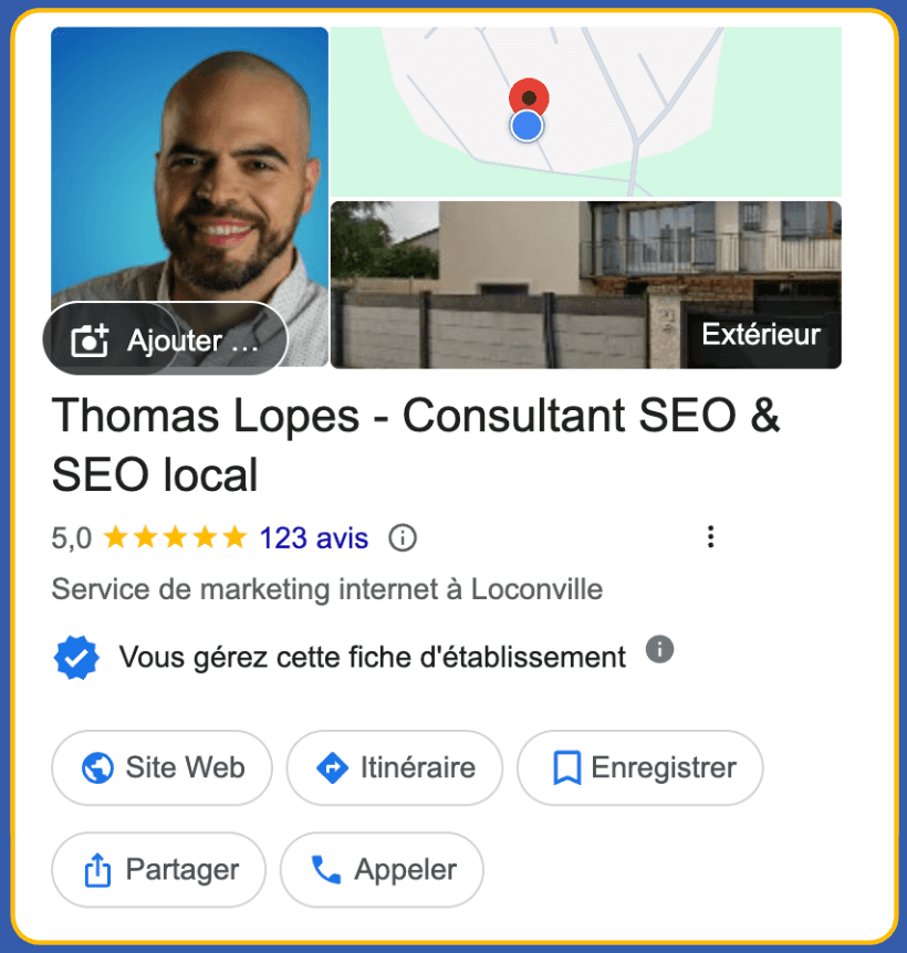 ✔︎ Optimisation de la fiche entreprise Google.