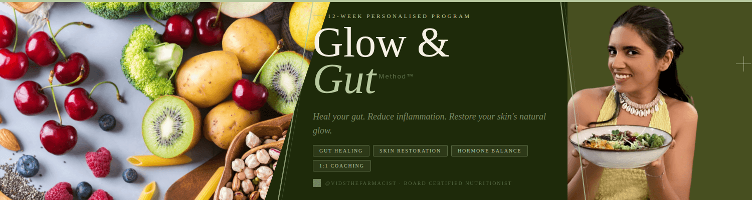 The Glow & Gut Method™ is a step-by-step approach to healing your gut, reducing inflammation & restoring your skin's natural glow — from the inside out.