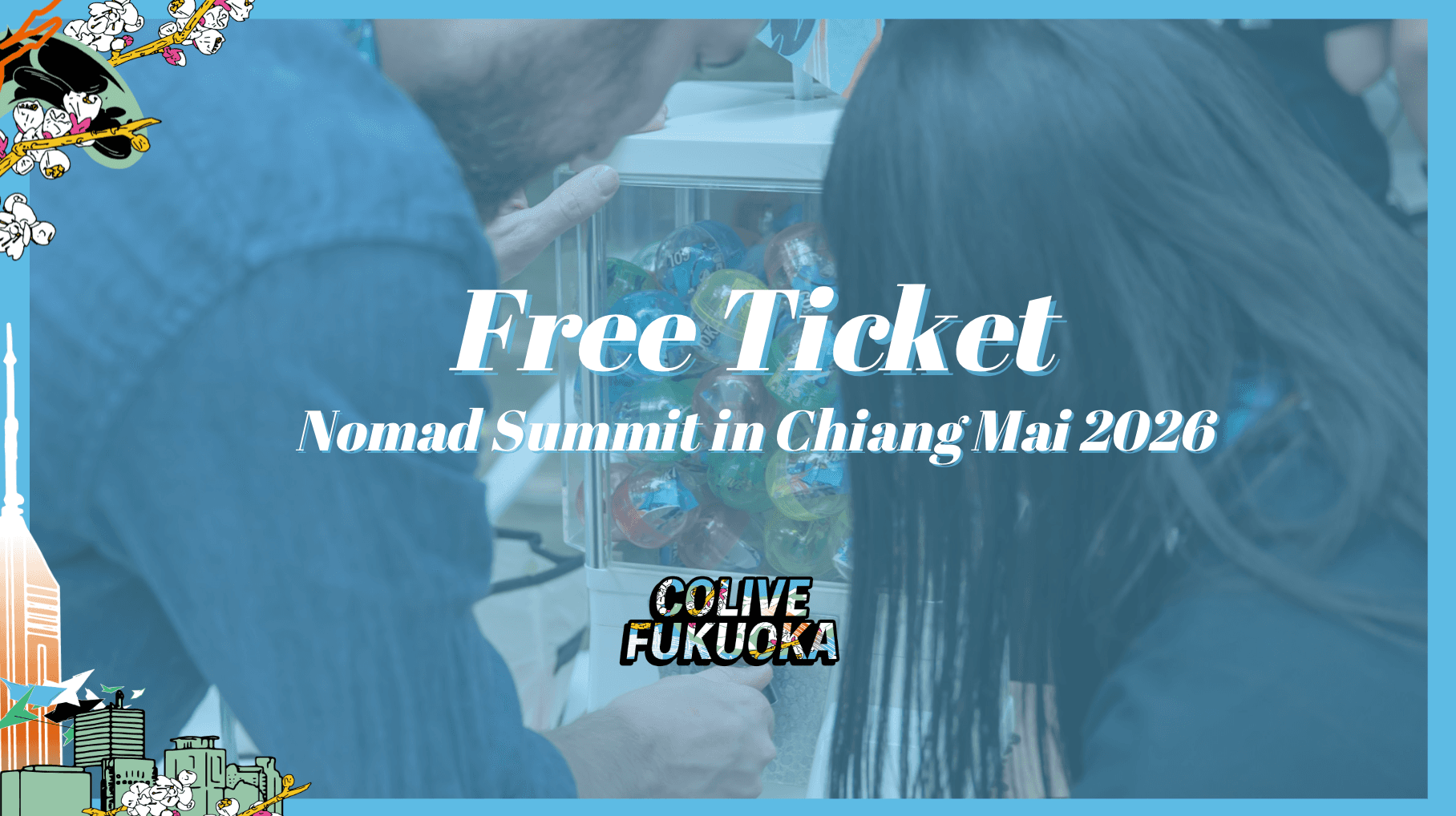 To celebrate our sponsorship of the Nomad Summit in Chiang Mai, we’re running a special raffle exclusively for the Colive Fukuoka community — and two lucky winners will receive a free Nomad Summit Chiang Mai ticket!